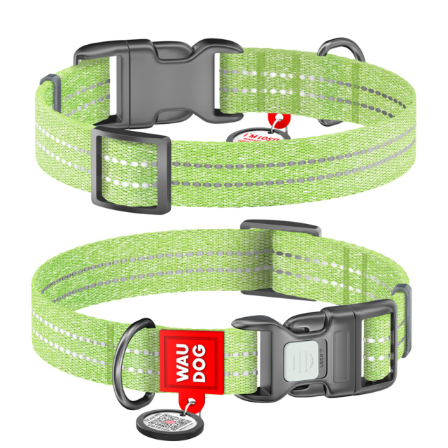 UA MarketОдесаWaudog РозплідникТовари та АксесуариНашийник WAUDOG Re-cotton з QR паспортом, відновлена бавовна, пластикова пряжка (ширина 15 мм, довжина 25-35 см) салатовий