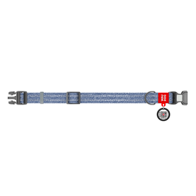 Нашийник WAUDOG Re-cotton з QR паспортом, відновлена бавовна, пластикова пряжка (ширина 15 мм, довжина 25-35 см) синій