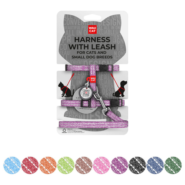 UA MarketОдесаWaudog РозплідникТовари та АксесуариШлея з повідцем для котів WAUCAT Re-cotton з QR паспортом, з відновленої бавовни, світловідбиваюча, пластиковий фастекс, XS, Ш 10 мм, Д 122 см, В...