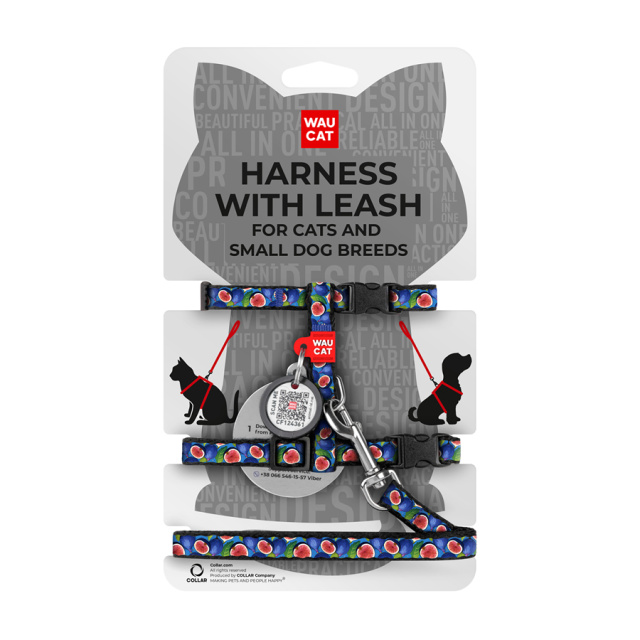 UA MarketОдесаWaudog РозплідникТовари та АксесуариШлея з повідцем для котів та дрібних порід собак WAUCAT Nylon з QR паспортом, малюнок «Інжир», пластиковий фастекс, XS, Ш 10 мм, В 25-40 см, С 20-30