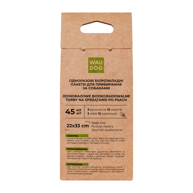 Біорозкладні гігієнічні пакети зроблять прогулянки з улюбленцем ще комфортнішими! Вони призначені для прибирання за тваринами. Виготовлені з кукурудзяного крохмалю та абсолютно не містять поліетилен, завдяки чому є 100% біорозкладними.