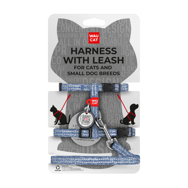 UA MarketОдесаWaudog РозплідникТовари та АксесуариШлея з повідцем для котів WAUCAT Re-cotton з QR паспортом, з відновленої бавовни, світловідбиваюча, пластиковий фастекс, XS, Ш 10 мм, Д 122 см, В...