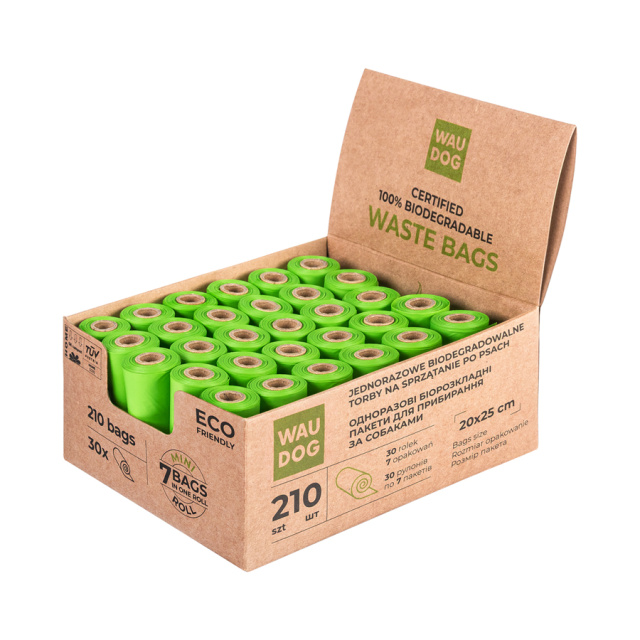 Біорозкладні гігієнічні пакети зроблять прогулянки з улюбленцем ще комфортнішими! Вони призначені для прибирання за тваринами. Виготовлені з кукурудзяного крохмалю та абсолютно не містять поліетилен, завдяки чому є 100% біорозкладними. Рулон гігієнічних пакетів WAUDOG можна використовувати з рулетками WAUDOG R-leash, які мають контейнер для гігієнічних пакетів.