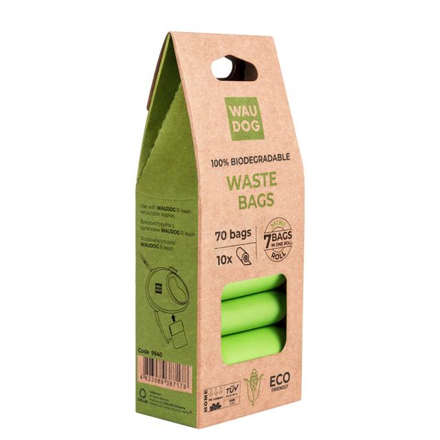 Біорозкладні гігієнічні пакети зроблять прогулянки з улюбленцем ще комфортнішими! Вони призначені для прибирання за тваринами. Виготовлені з кукурудзяного крохмалю та абсолютно не містять поліетилен, завдяки чому є 100% біорозкладними. Рулон гігієнічних пакетів WAUDOG можна використовувати з рулетками WAUDOG R-leash, які мають контейнер для гігієнічних пакетів.