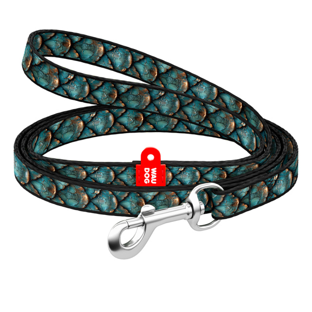 Повідець для котів та дрібних порід собак нейлоновий WAUDOG Nylon, малюнок «Луска», XS, Ш 10 мм, Дов 122 см