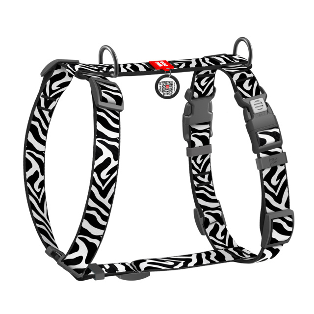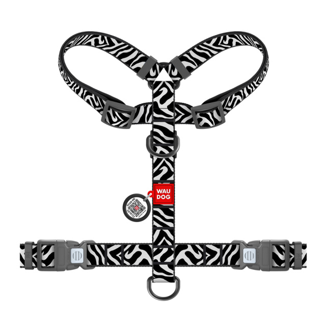 UA MarketОдесаWaudog РозплідникТовари та АксесуариАмуніціяWAUDOG NylonШлея для собак анатомічна H-подібна WAUDOG Nylon з QR-паспортом, малюнок «Зебра», пластиковий фастекс, S, Ш 15 мм, A 30-45 см, B 36-45 см
