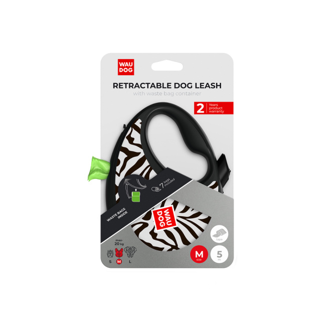 UA MarketОдесаWaudog РозплідникТовари та АксесуариАмуніціяWAUDOG R-leashПовідець-рулетка для собак WAUDOG R-leash з контейнером для пакетів, малюнок «Зебра», світловідбивна стрічка, M, до 20 кг, 5 м