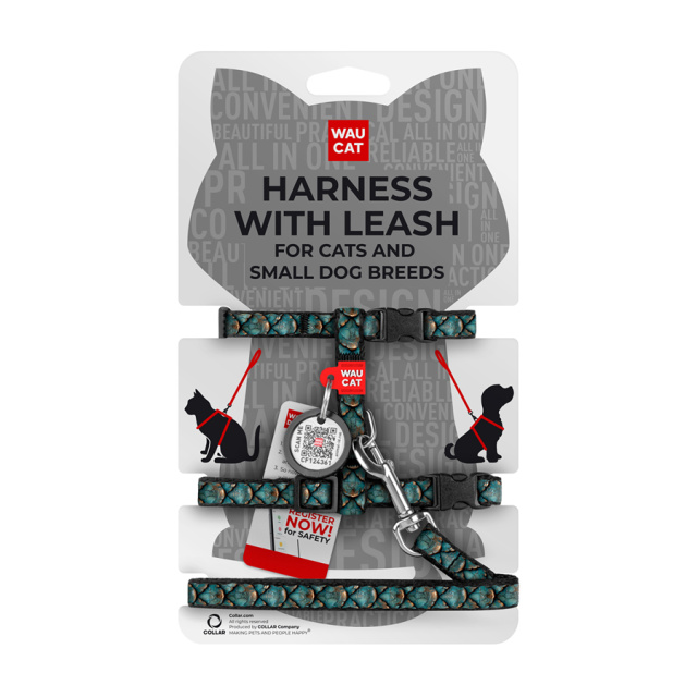 UA MarketОдесаWaudog РозплідникТовари та АксесуариАмуніціяWAUDOG NylonШлея з повідцем для котів та дрібних порід собак WAUCAT Nylon з QR адресником, малюнок «Луска», пластиковий фастекс, XS, Ш 10 мм, В 25-40 см, С...