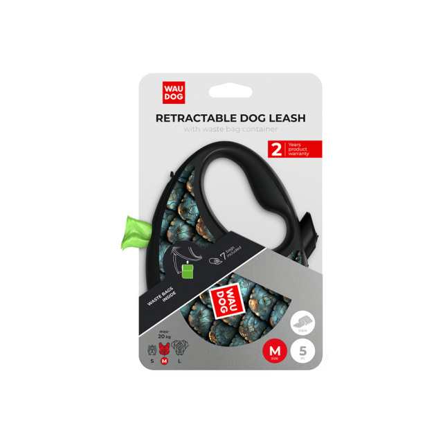 UA MarketОдесаWaudog РозплідникТовари та АксесуариАмуніціяWAUDOG R-leashПовідець-рулетка для собак WAUDOG R-leash з контейнером для пакетів, малюнок «Луска», світловідбивна стрічка, M, до 20 кг, 5 м