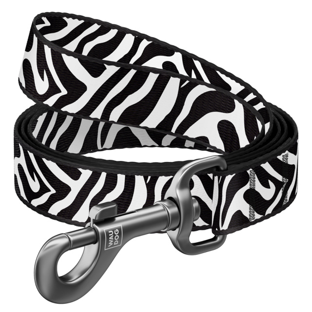 Повідець для собак нейлоновий WAUDOG Nylon, малюнок «Зебра», S, Ш 15 мм, Дов 200 см