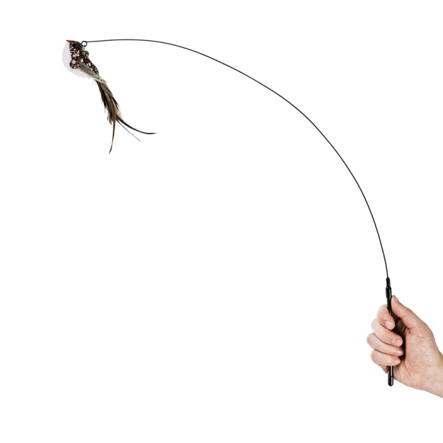 Іграшка для котів WAUCAT Fun Teaser дражнилка на присосці з пташкою, білий, пластик, силікон, перо, 800 мм