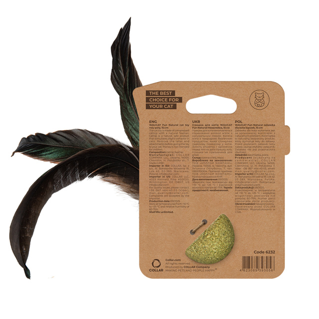 Серія WAUCAT Fun Natural — це іграшки, які виготовлені виключно з екологічних матеріалів, а отже дбайливі до навколишнього середовища. Неваляйка має у складі котячу м'яту. Котяча м’ята стимулює активність котів, допомагає знімати стрес і покращує настрій. Крім того, вона абсолютно безпечна для тварин та призначена для задоволення природних інстинктів улюбленця. Завдяки пір'їнкам, іграшка одразу приверне увагу котика та зацікавить його на довгий час.